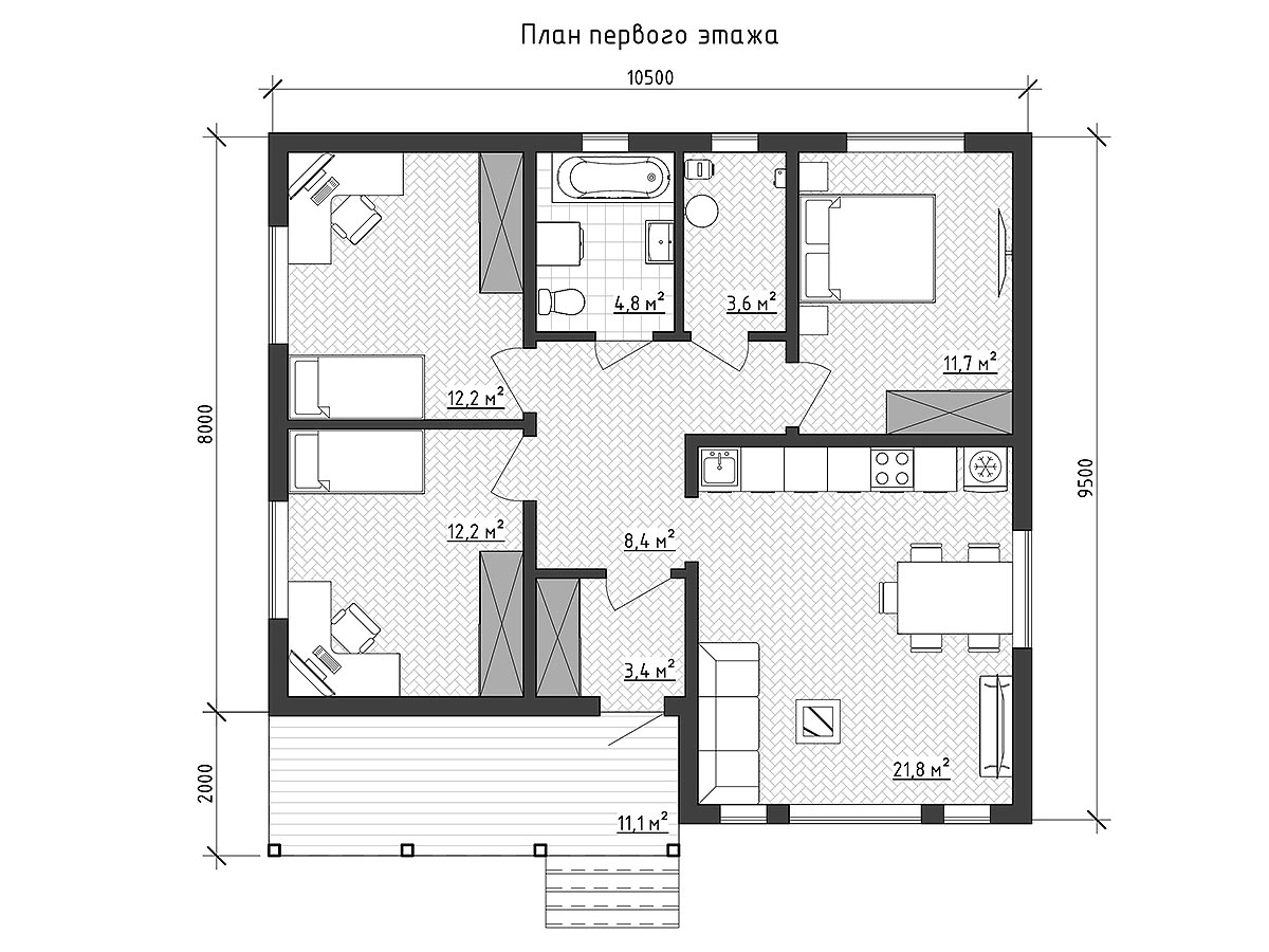 - По желанию заказчика может быть изменена внешняя отделка дома, внутренняя отделка дома, толщина и материал утепления стен и перекрытий, фундамент.