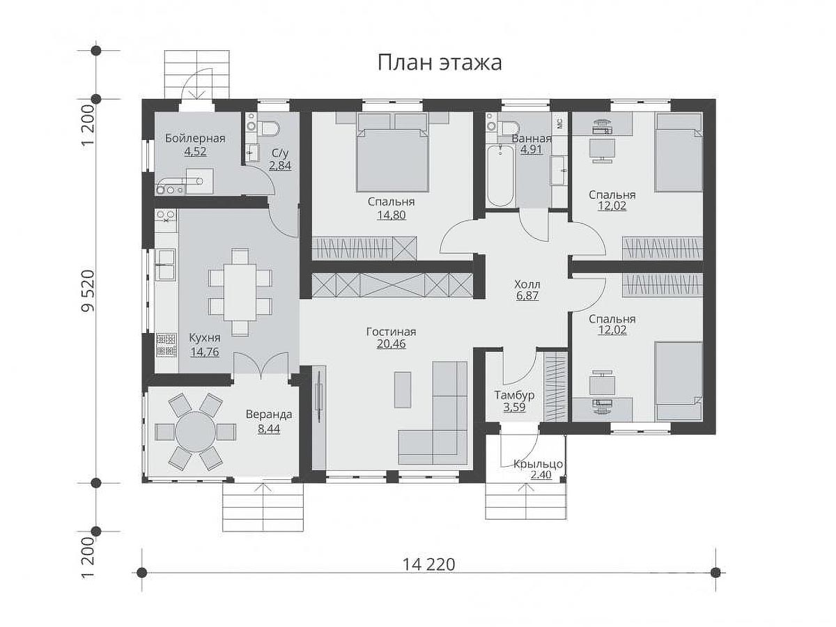 - По желанию заказчика может быть изменена внешняя отделка дома, внутренняя отделка дома, толщина и материал утепления стен и перекрытий, фундамент.