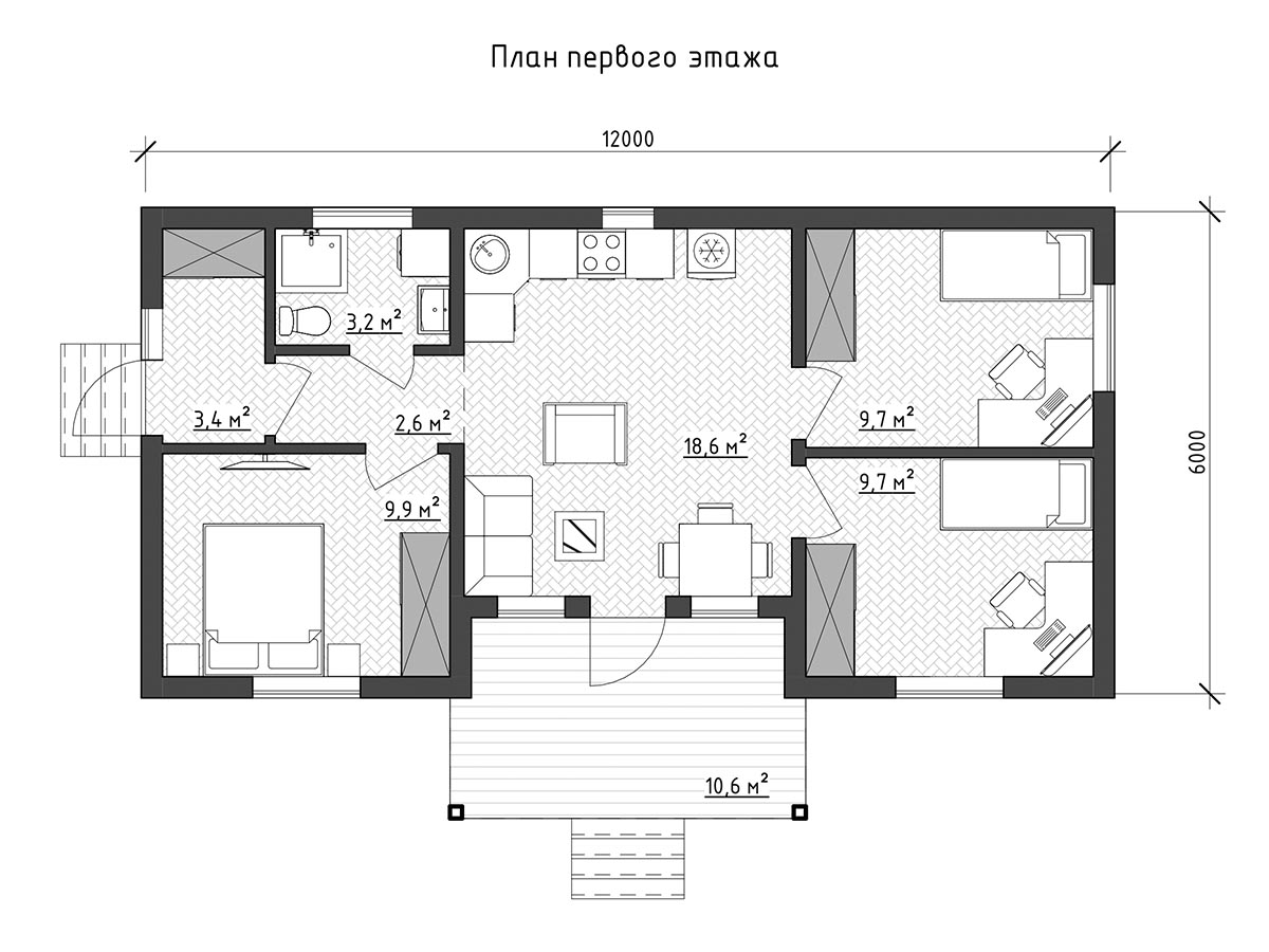 - По желанию заказчика может быть изменена внешняя отделка дома, внутренняя отделка дома, толщина и материал утепления стен и перекрытий, фундамент.