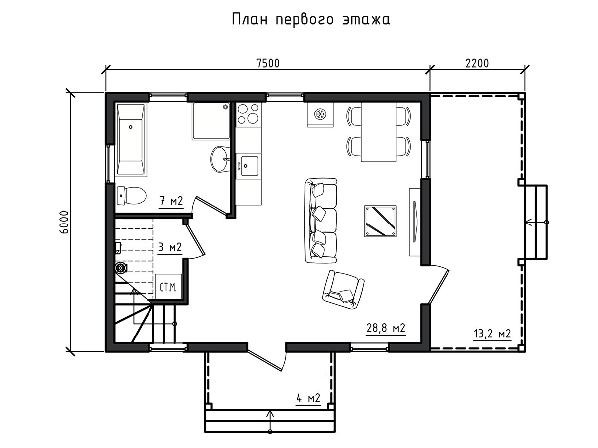 - По желанию заказчика может быть изменена внешняя отделка дома, внутренняя отделка дома, толщина и материал утепления стен и перекрытий, фундамент.