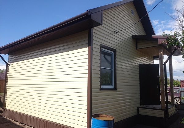 Стены: деревянный каркас с утеплением 200 мм, фасад – металлосайдинг "корабельная доска".