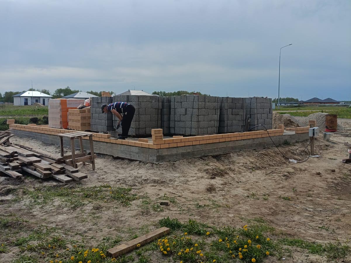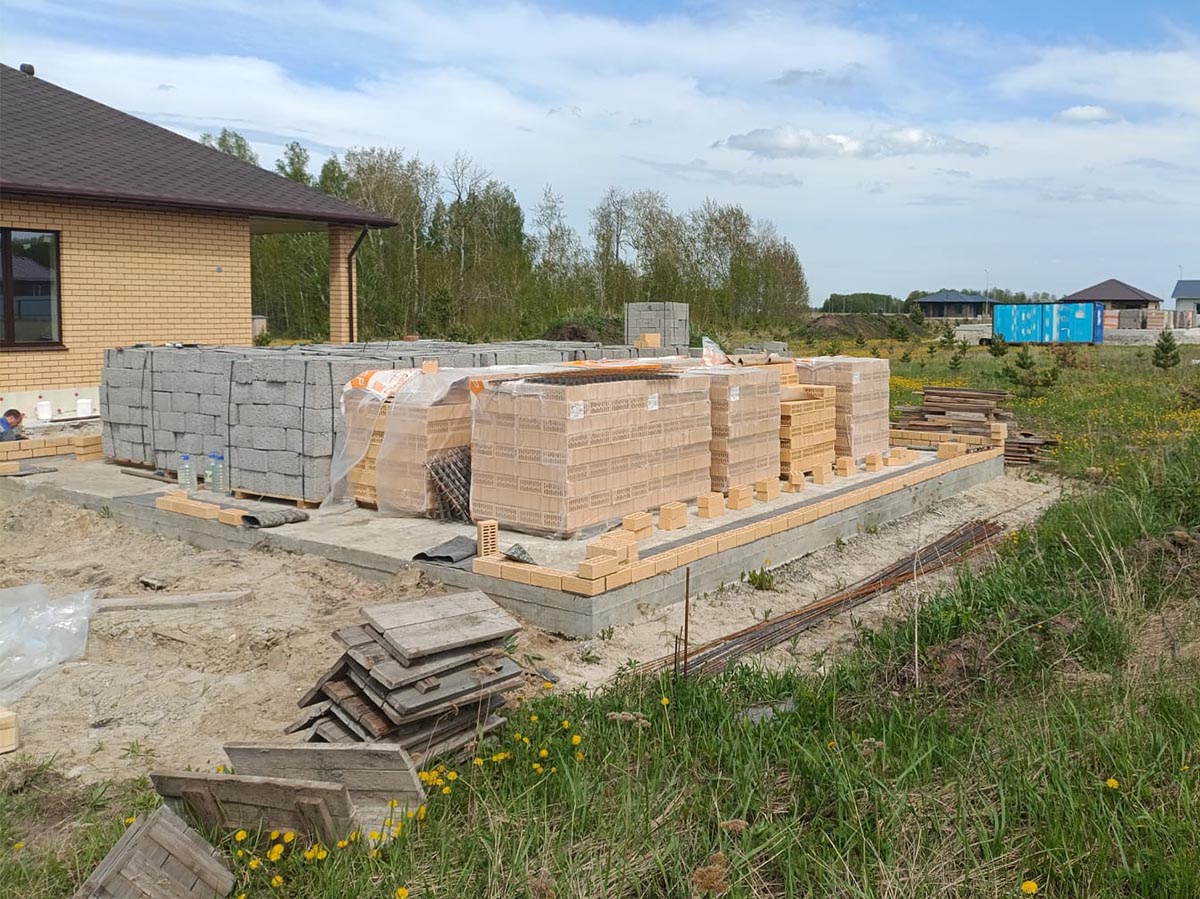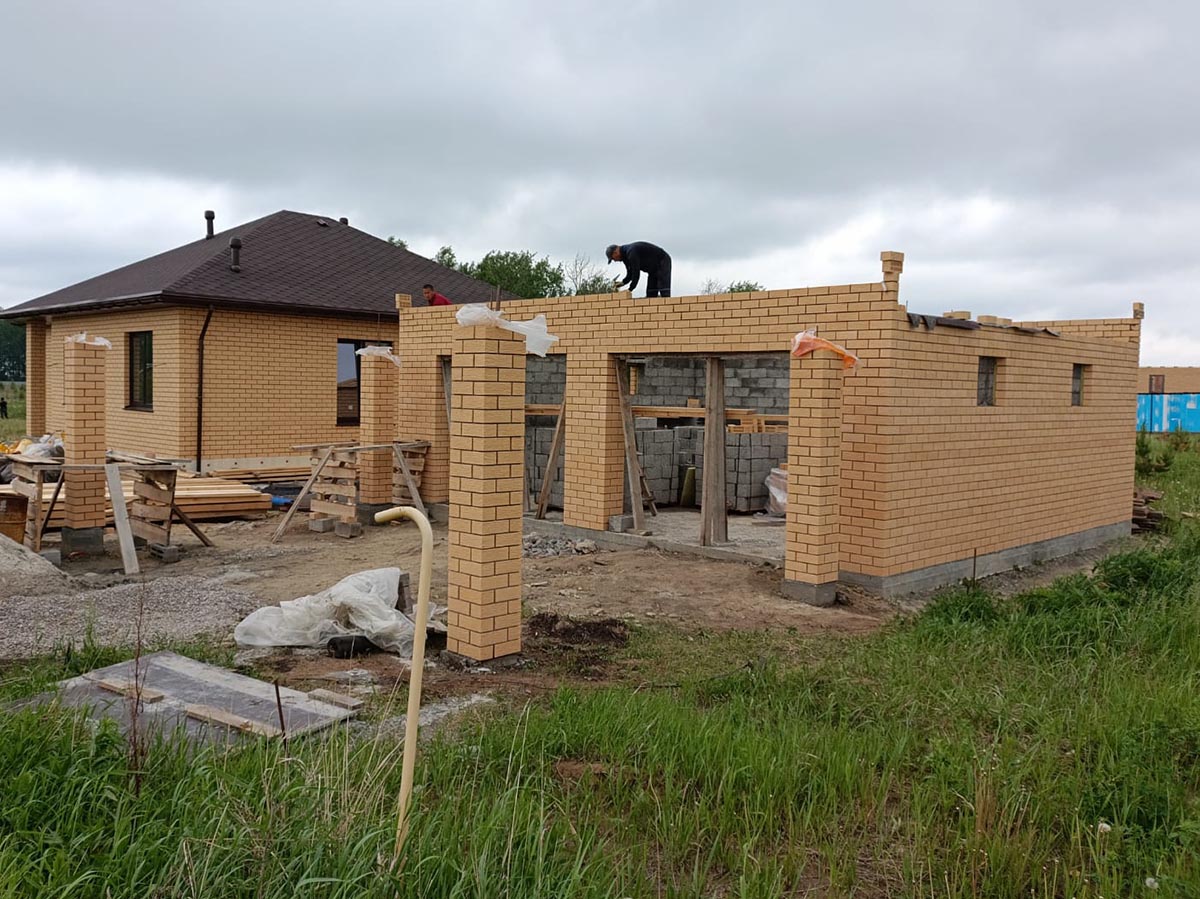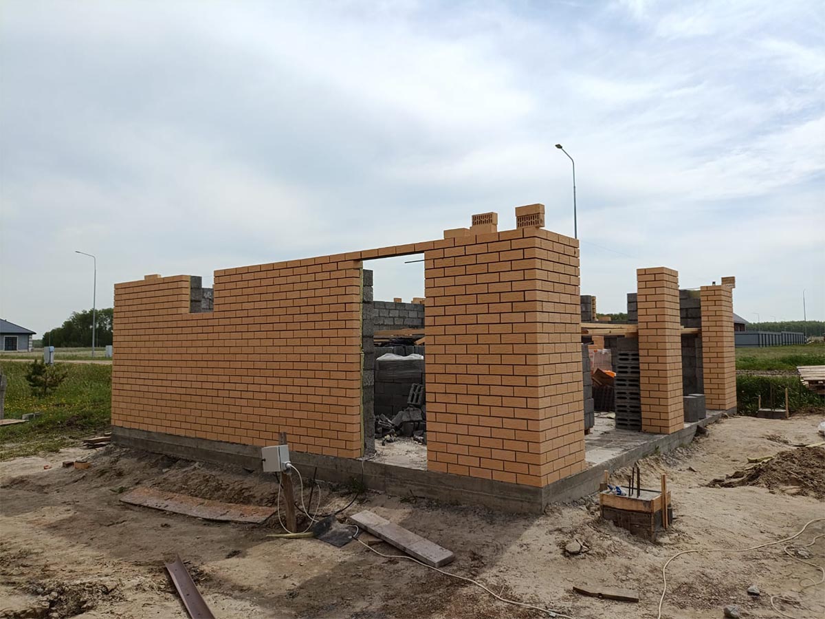 Стены: керамзитоблок 200мм с утеплением 50мм и облицовкой кирпичом