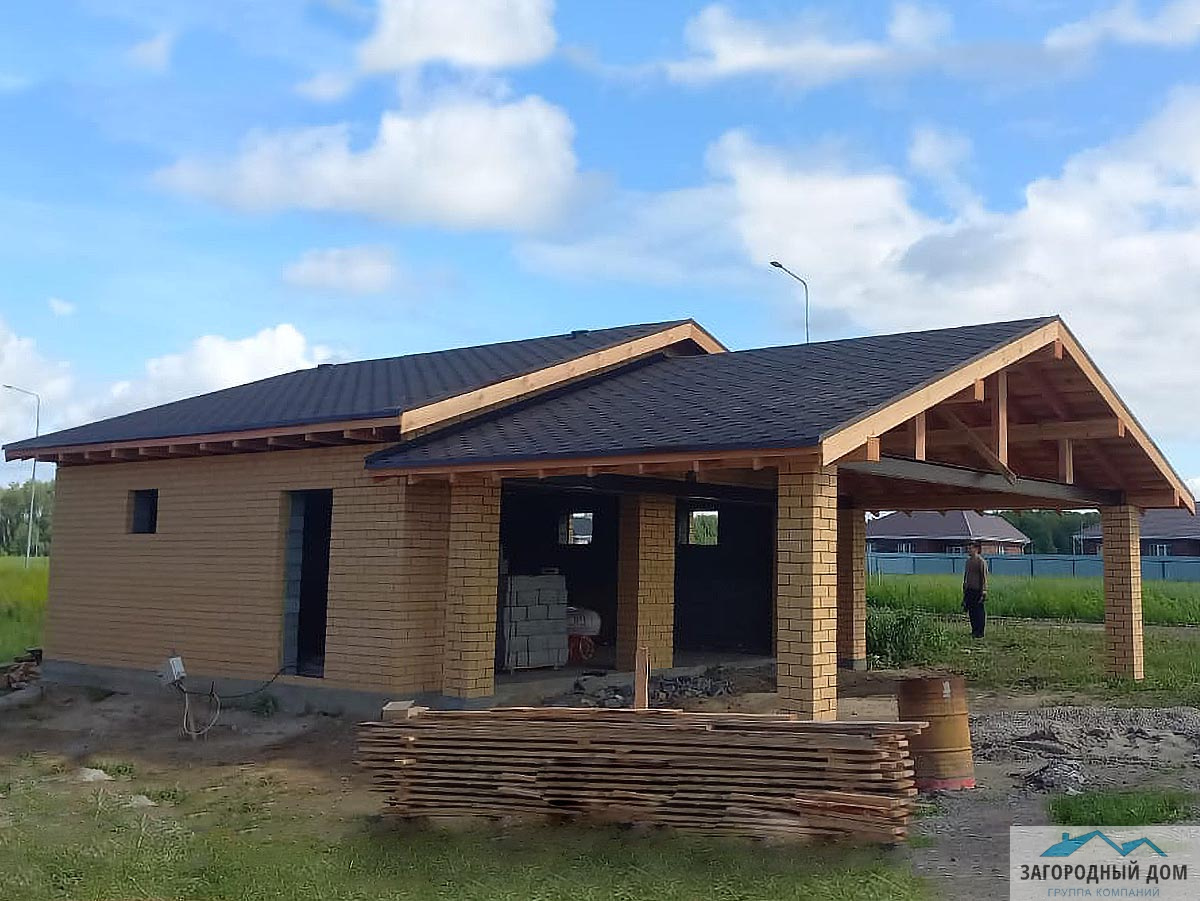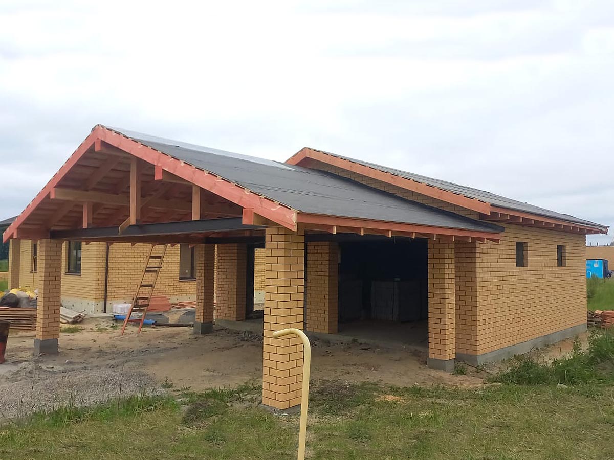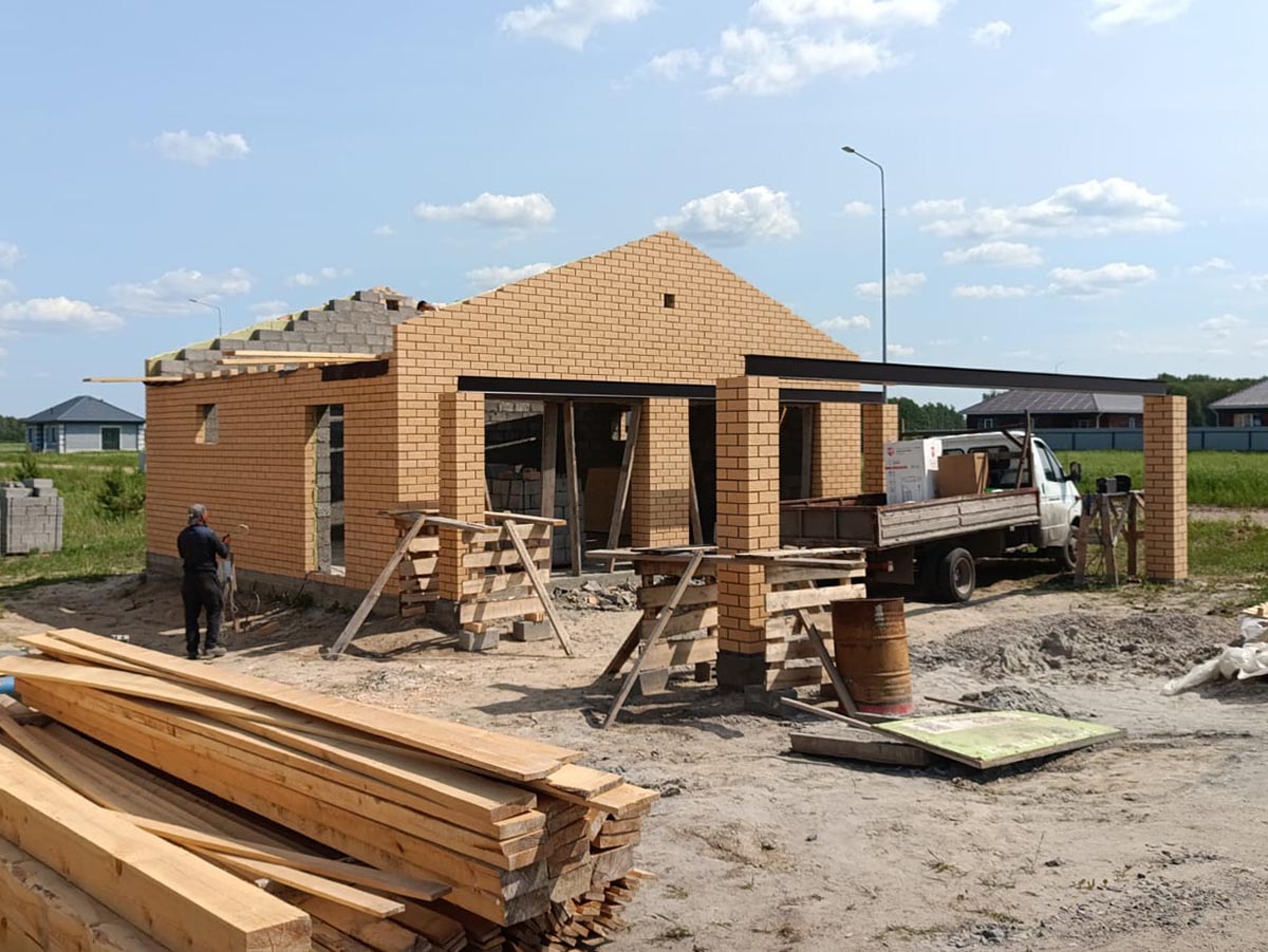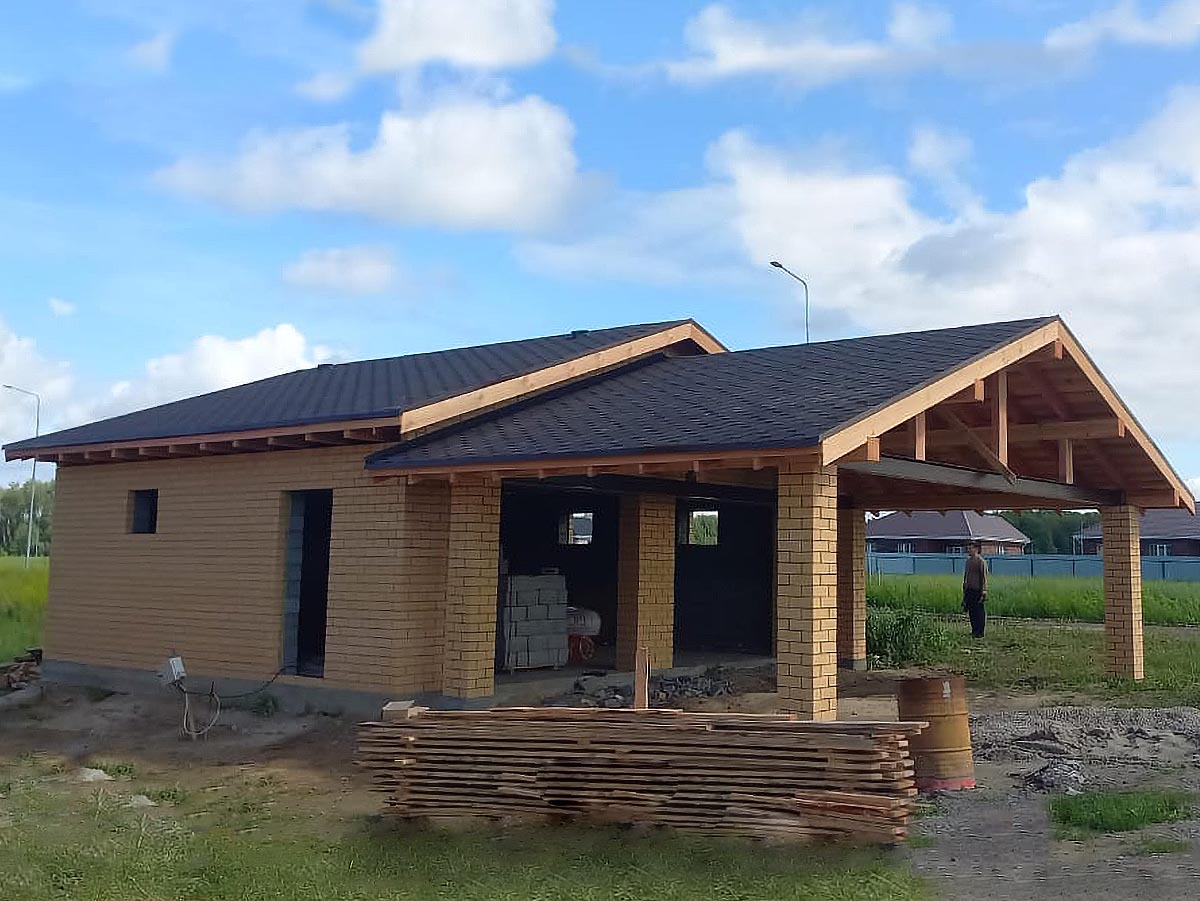 Стены: керамзитоблок 200мм с утеплением 50мм и облицовкой кирпичом