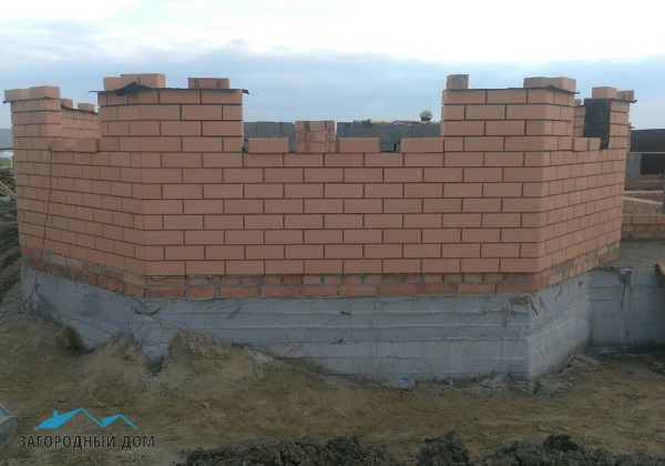 Стены: керамзитоблок, толщиной 400мм, фасад – облицовка керамическим кирпичем с утеплением 100мм