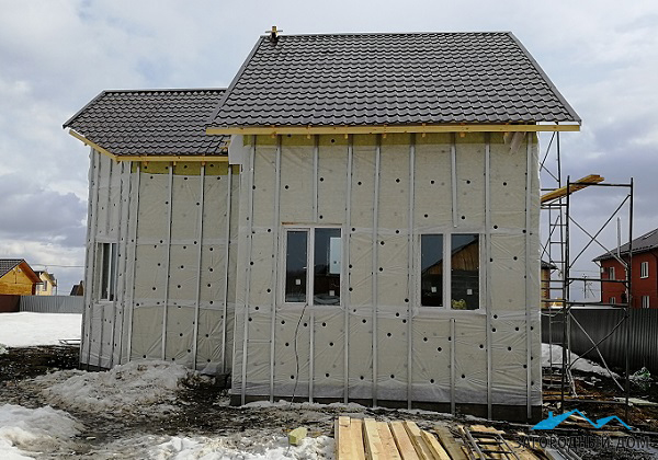 Стены: керамзитоблок, толщиной 400мм, фасад – металлосайдинг "Корабельная доска" с утеплением 100мм