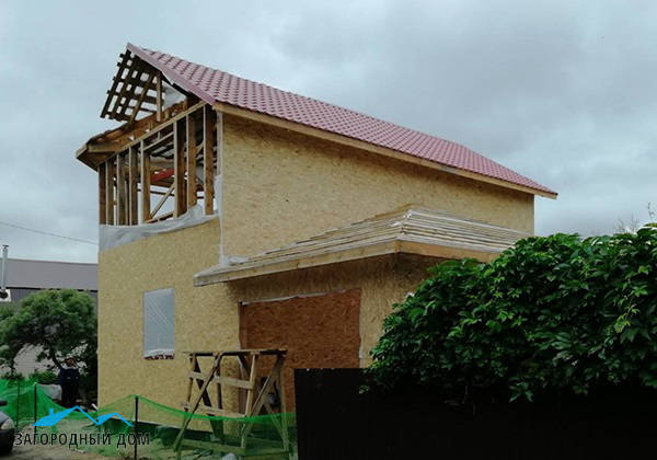 Стены: деревянный каркас с утеплением 200 мм, фасад – металлосайдинг "Корабельная доска"