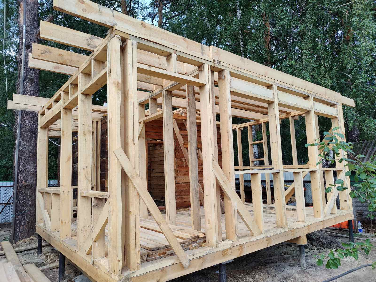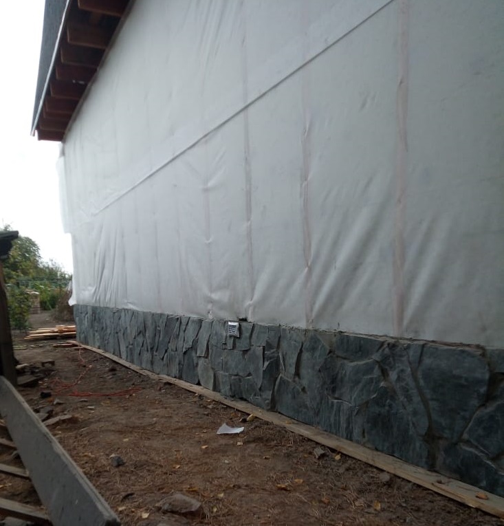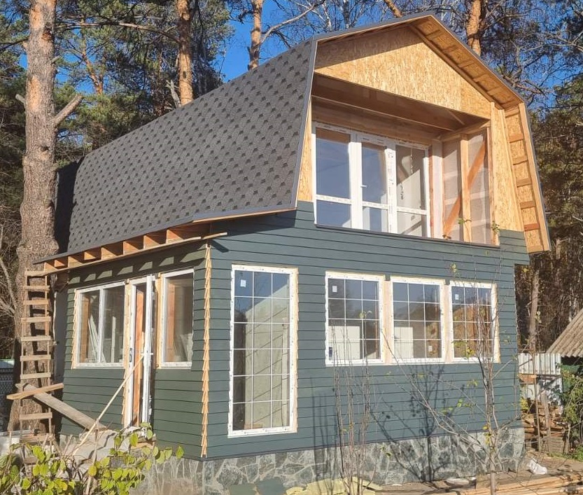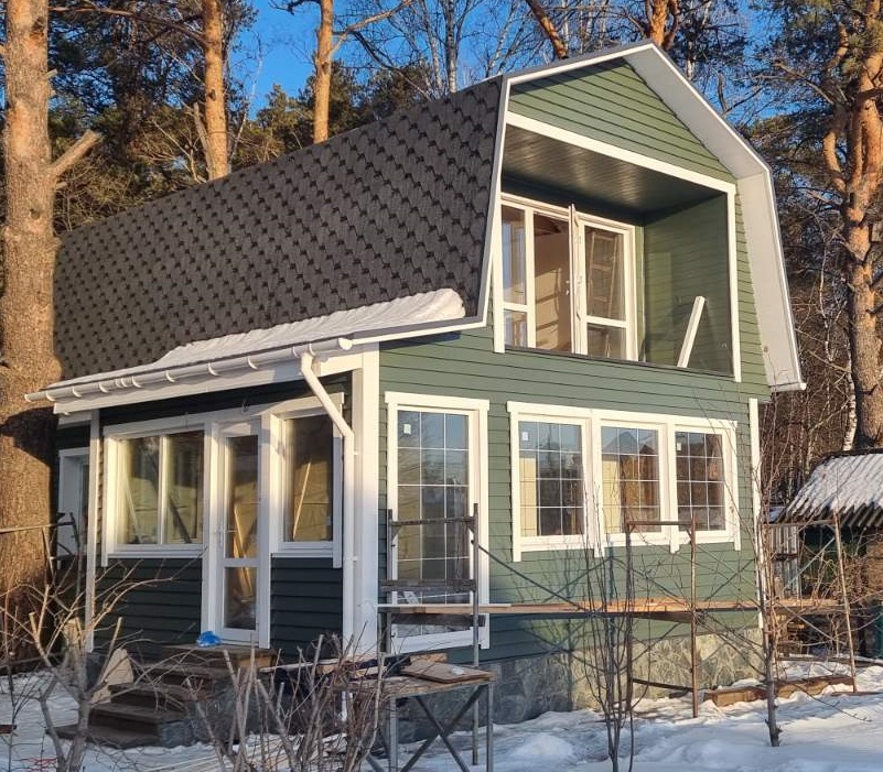 Стены: деревянный каркас с утеплением 200 мм, фасад – доска строганная