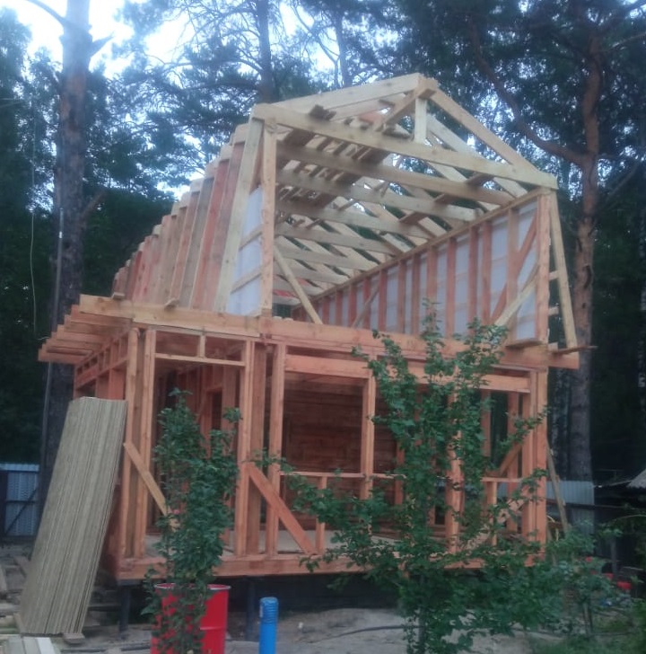 Перекрытие: по деревянным балкам с утеплением 200 мм и покрытием фанерой 18ммОкна: пластиковые, двухкамерный стеклопакет, поворотно откидные