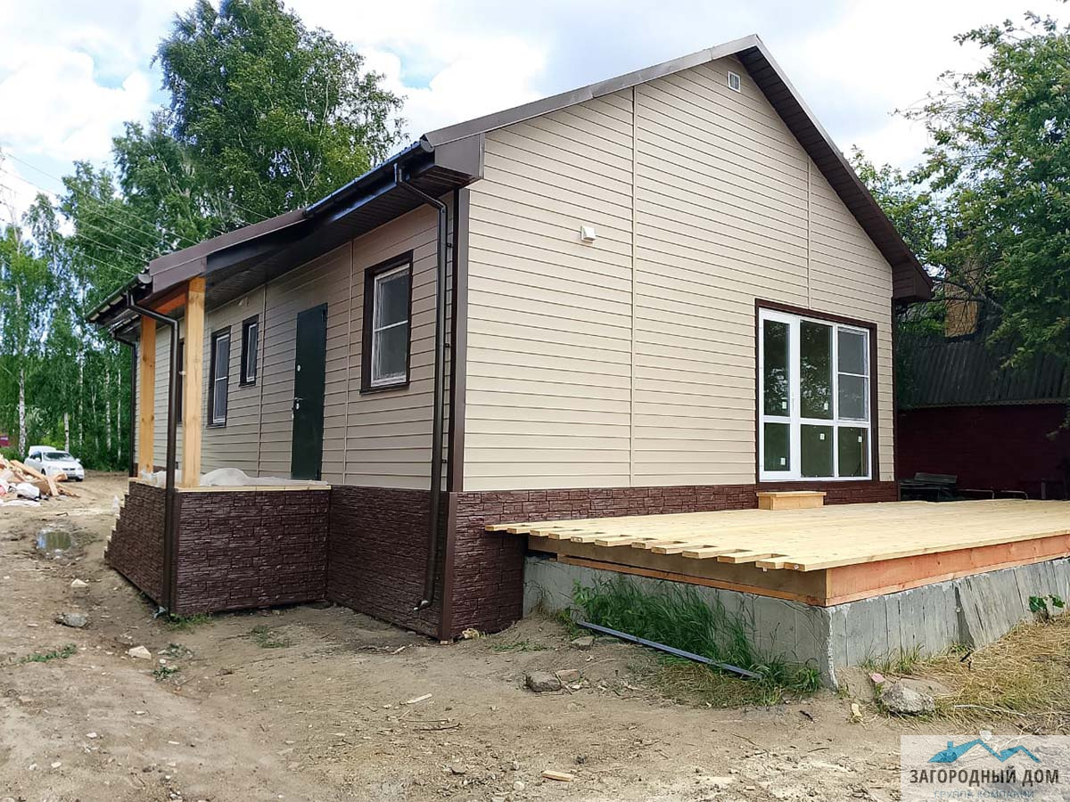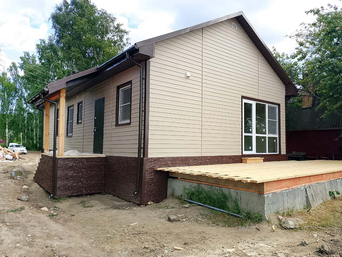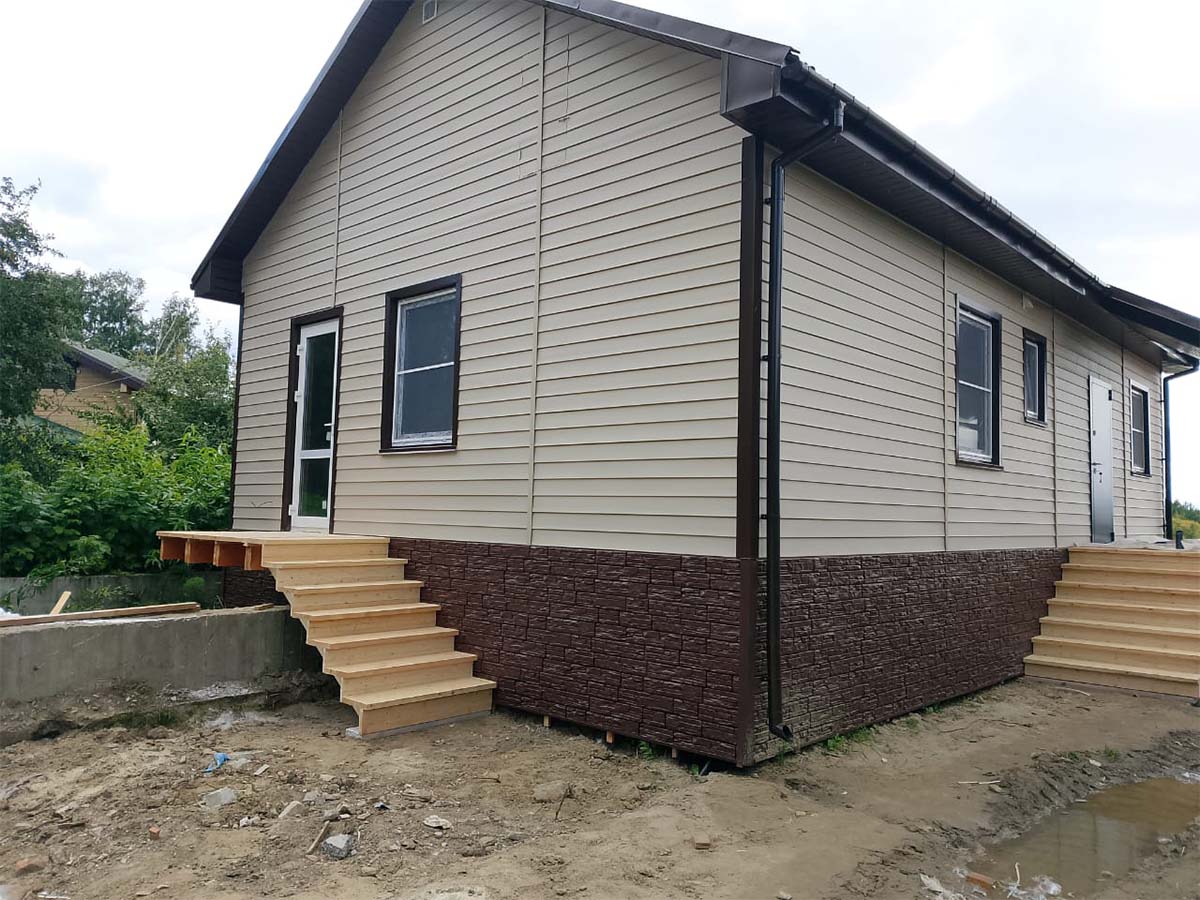 Фасад: сайдинг елочка, цокольные панели ЯФАСАД крымский сланец цвет арабика