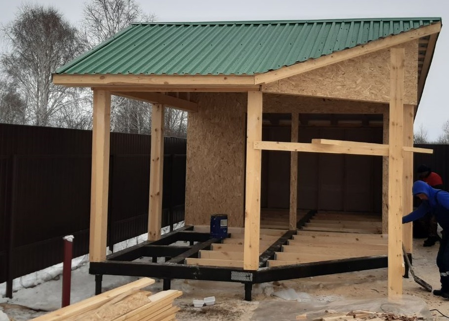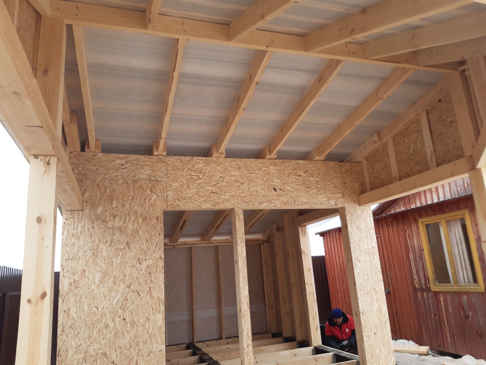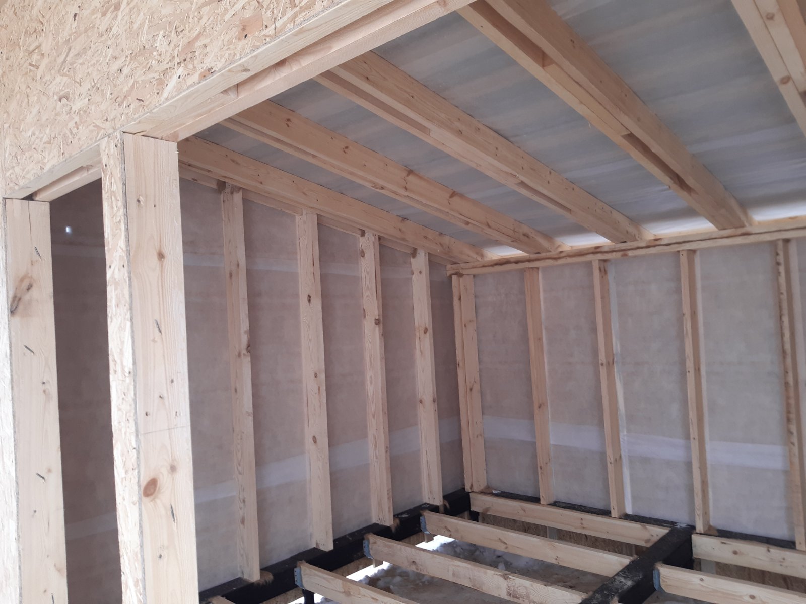 Стены: деревянный каркас с обшивкой OSB плитой 9 мм