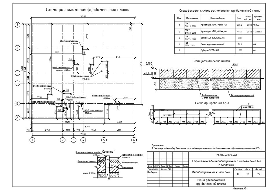 - На нем будут указаны все чертежи коммуникаций, места подведения.